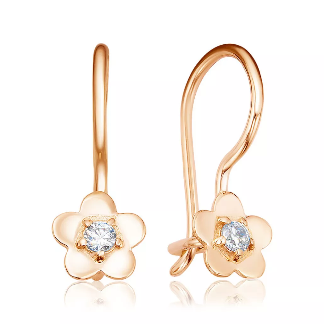 Серьги детские с фианитом из золота