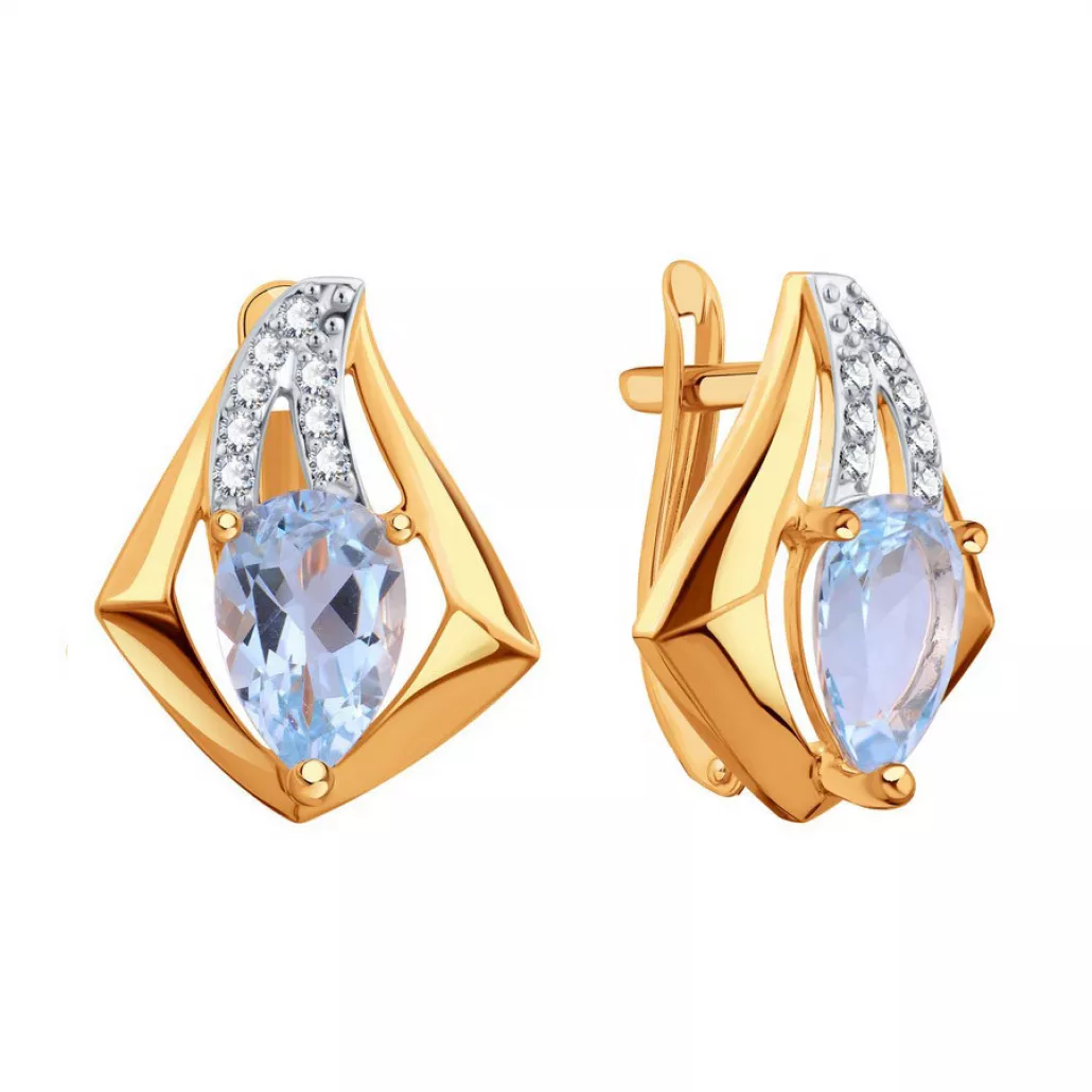 Серьги с топазом и фианитом из золота Артикул: Т14702Е293