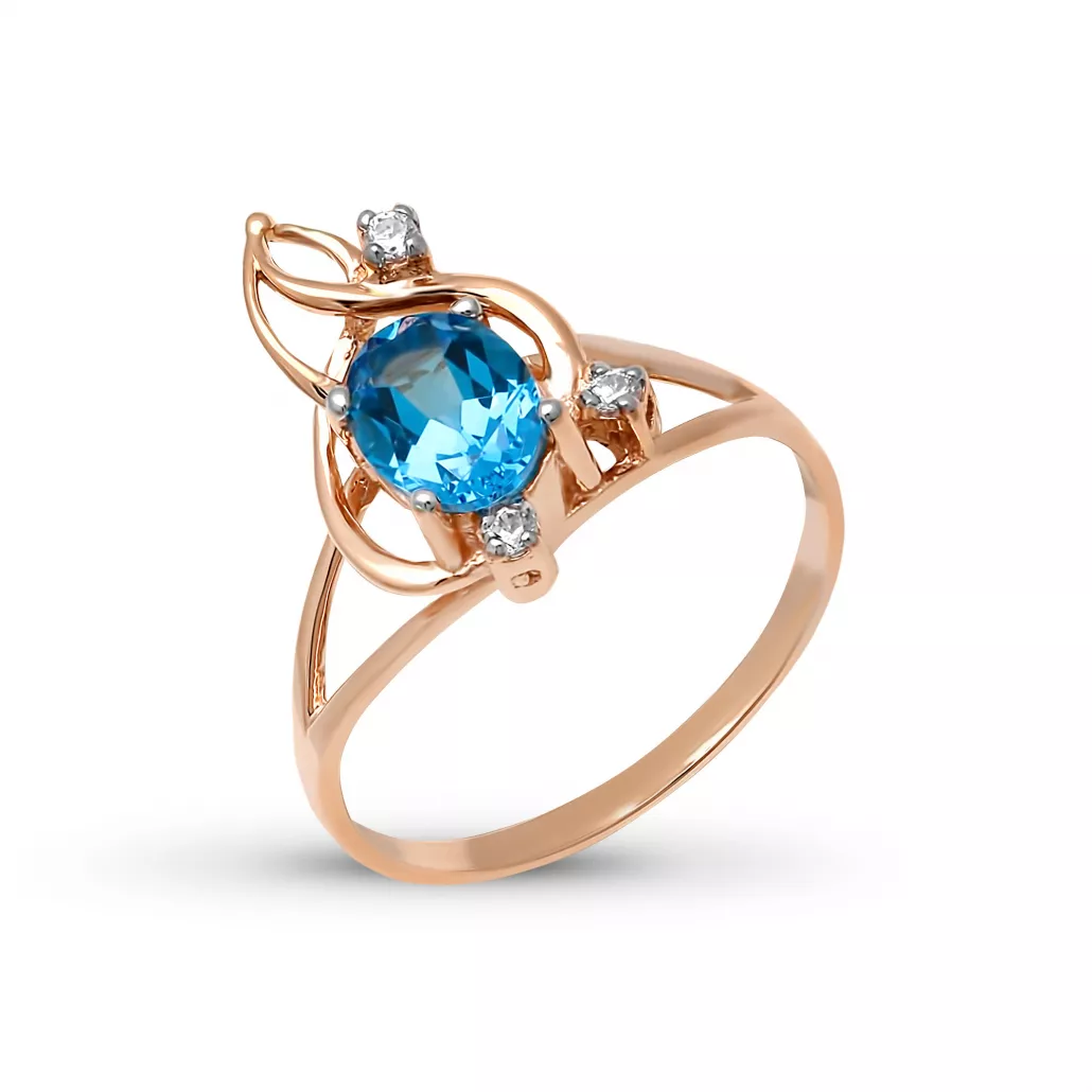 - Кольцо с фианитом и топазом из золота